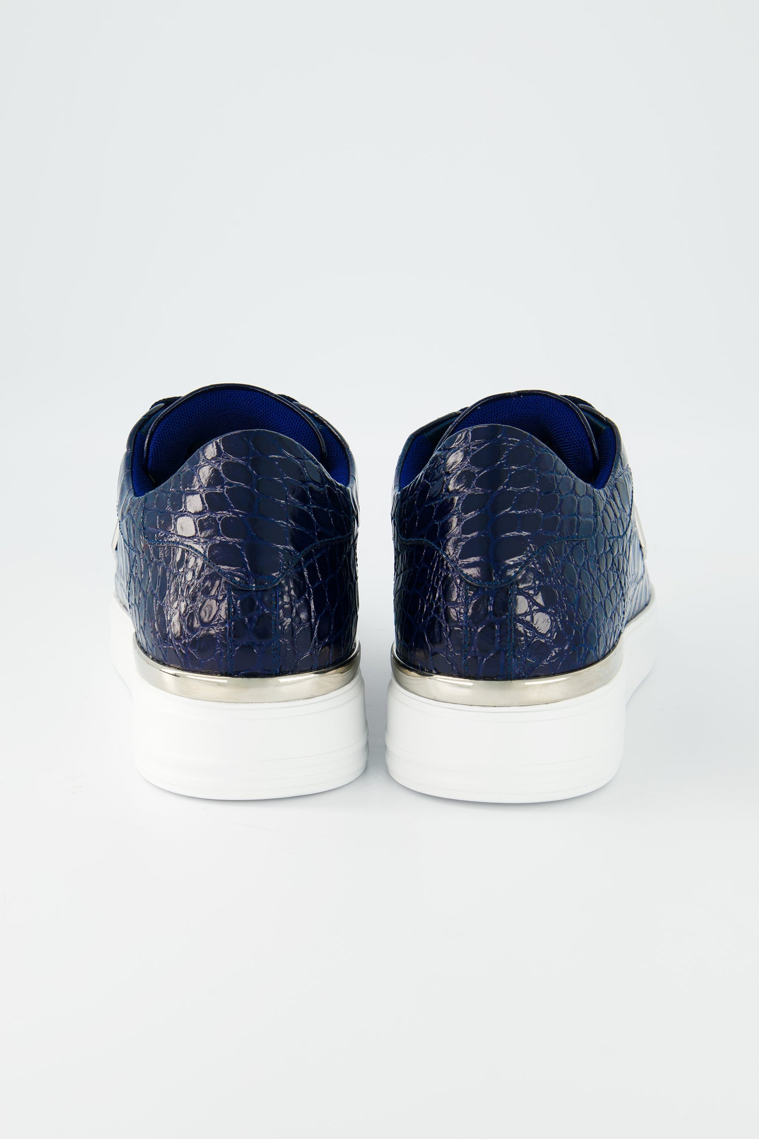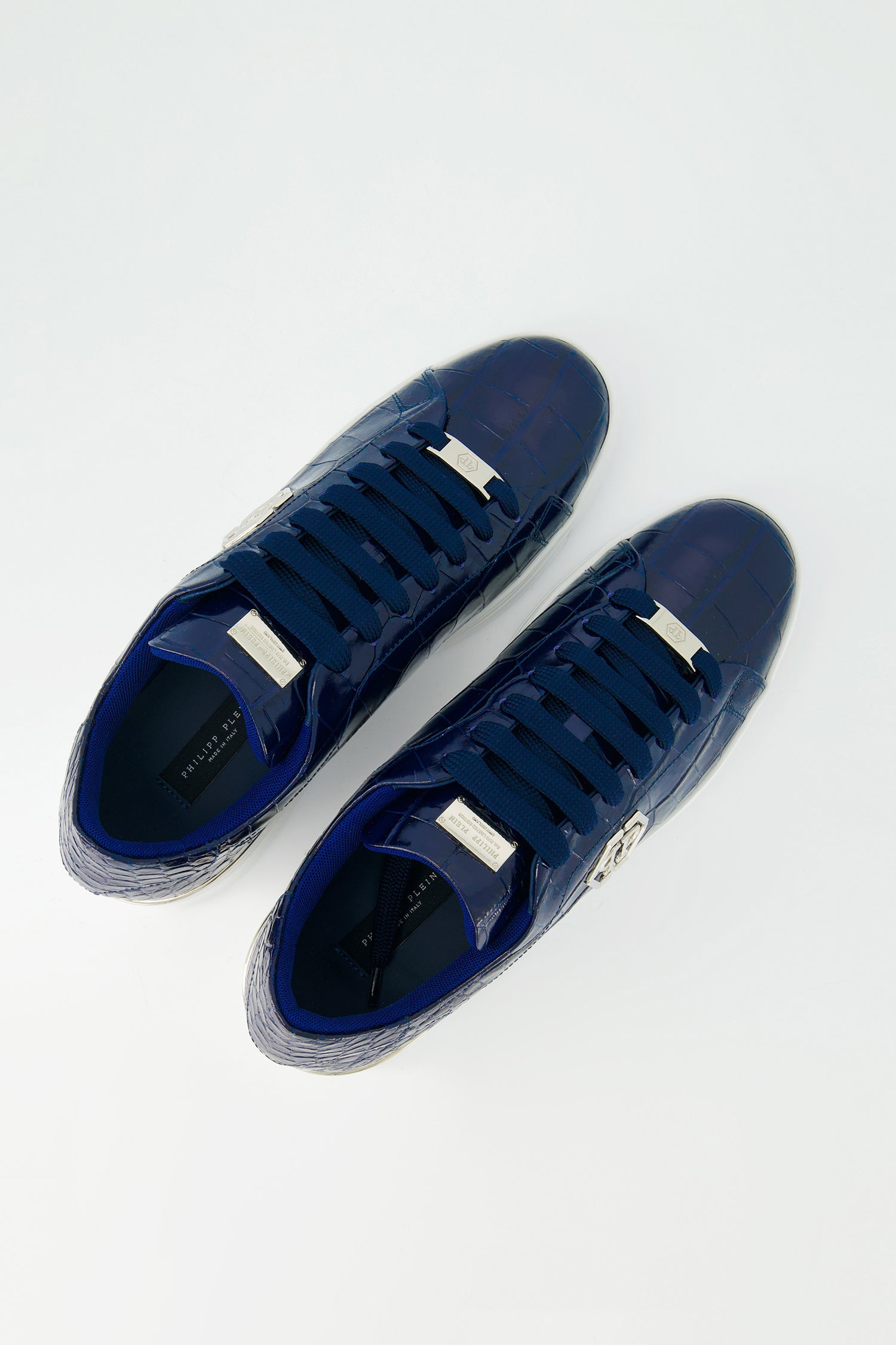 Philipp Plein Dark Blue Crocodile Leather Print Lo-Top Sneakers